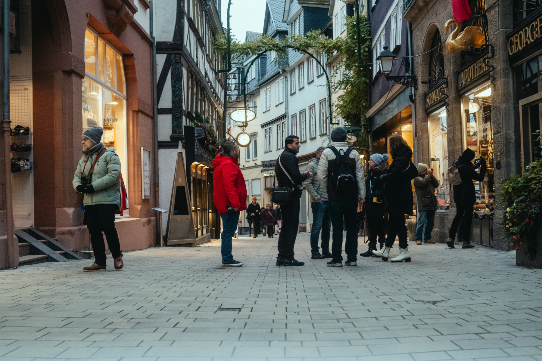 Treffpunkt ist um 18:30 Uhr am Parkplatz des Neuen Rathauses. Von hier aus führt der gemeinsame Weg durch die vorweihnachtliche Stadt in Richtung Altstadt – mit vielen inspirierenden Stopps und Blickwinkeln entlang der Strecke. Der Fokus liegt dabei auf dem bewussten Sehen: Lichtreflexe auf Kopfsteinpflaster, leuchtende Gesichter vor Verkaufsständen, feine Details in Dekorationen und die besondere Stimmung zwischen Trubel und Stille.