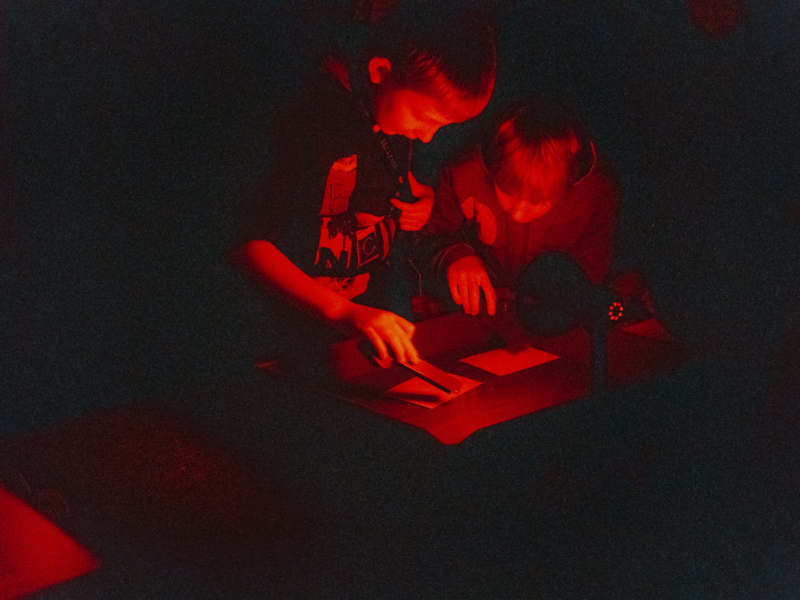 Der Workshop vermittelt zentrale Grundlagen der Optik und zeigt, wie Licht gebündelt wird und warum ein Bild in der Camera Obscura auf dem Kopf erscheint. Die Kinder setzen sich mit Kontrasten, Formen und Lichtquellen auseinander und entwickeln ein Bewusstsein dafür, wie Beobachtung und Gestaltung zusammenwirken. Auf einfache Weise wird erfahrbar, wie Motive entstehen und wie sich fotografische Entscheidungen auswirken.